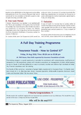 Thanks readers for excellent response for our Insurance Quiz published in our July 2018 issue. This month the lucky